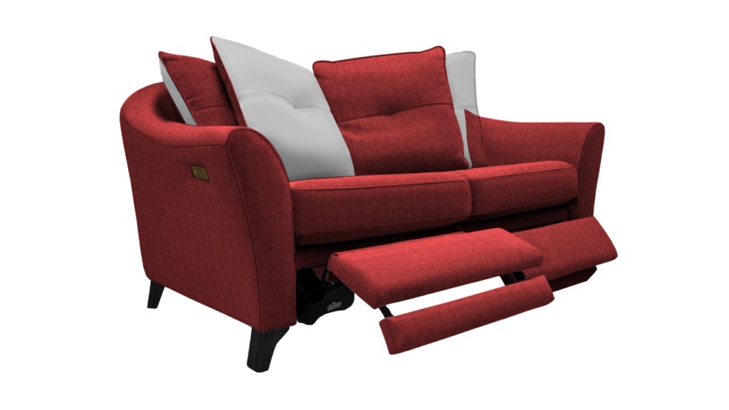 The G-Plan Hatton 2 Seater Double Power Footrest Pillow Back Sofa with USB offers a wonderful combination of style and comfort. The two integrated footrests are operated independently by touch buttons and the innovative power mechanisms ensures you glide effortlessly into your chosen position. There are integrated USB charging points. The generous, deep seats and full, sumptuous cushions deliver indulgent comfort, whilst the gentle curves on the cushions offer soft, smart sophistication. Choose from a lovely range of beautiful fabrics, and you can choose an accent fabric for one side of the pillow back cushions, and a choice of finishes for the wood feet, to suit your style.Matching chairs, formal and pillowback sofas, including models with integrated footrests, and a footstool are available to give a coordinated look to a room.