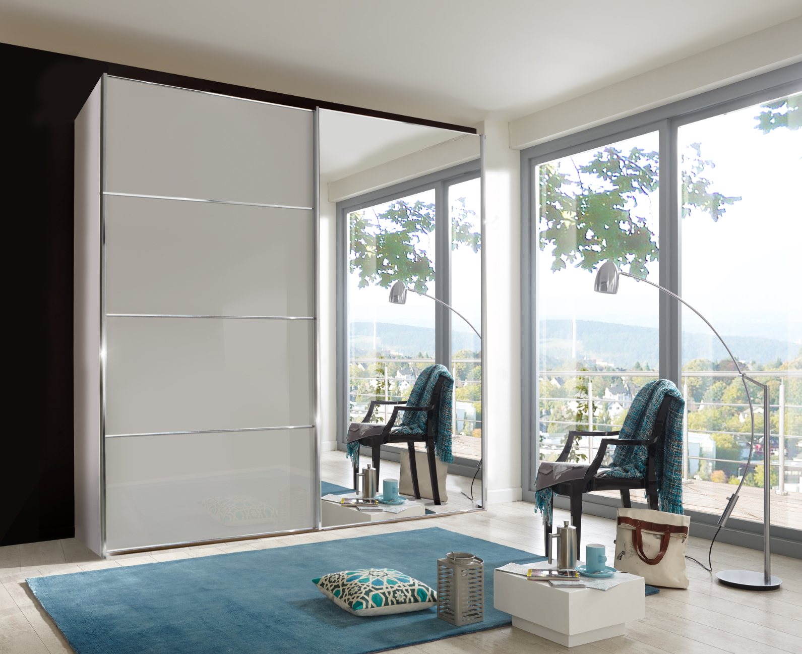 Miami Plus Wardrobe with panels, Glass Doors in White 2 doors 1 glass door left 150cm